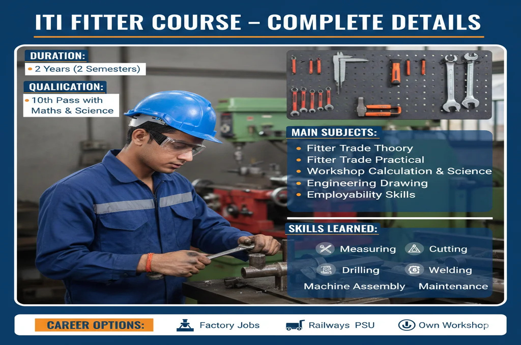 In simple words, ITI Fitter teaches you how to make, assemble, repair, and maintain mechanical parts and machines.